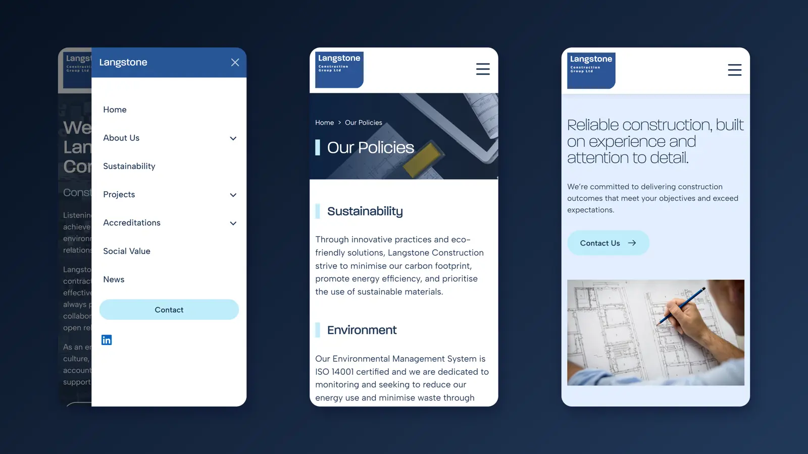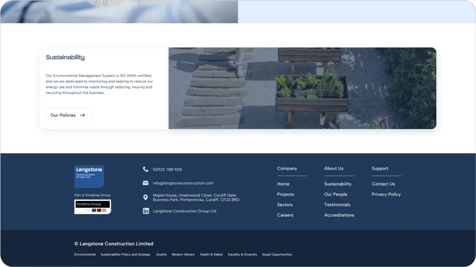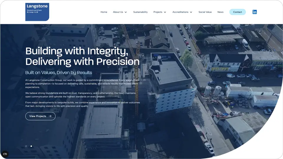The outcome is a modern, project-led website that better reflects the quality and breadth of Langstone Construction’s work. Clearer sector navigation and improved project visibility have created a more intuitive user journey, making it easier for prospective clients to explore relevant experience and understand the company’s capabilities.